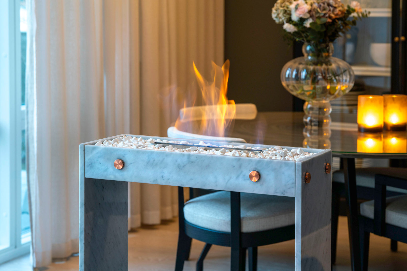 Skapa en inbjudande atmosfär med vårt eldstativ – en elegant inredningsdetalj som kombinerar design och funktion. Den rökfria lågan ger ett mjukt, levande sken som lyfter varje rum, från vardagsrummet till uteplatsen. Perfekt för att addera både värme och stämning till ditt hem.